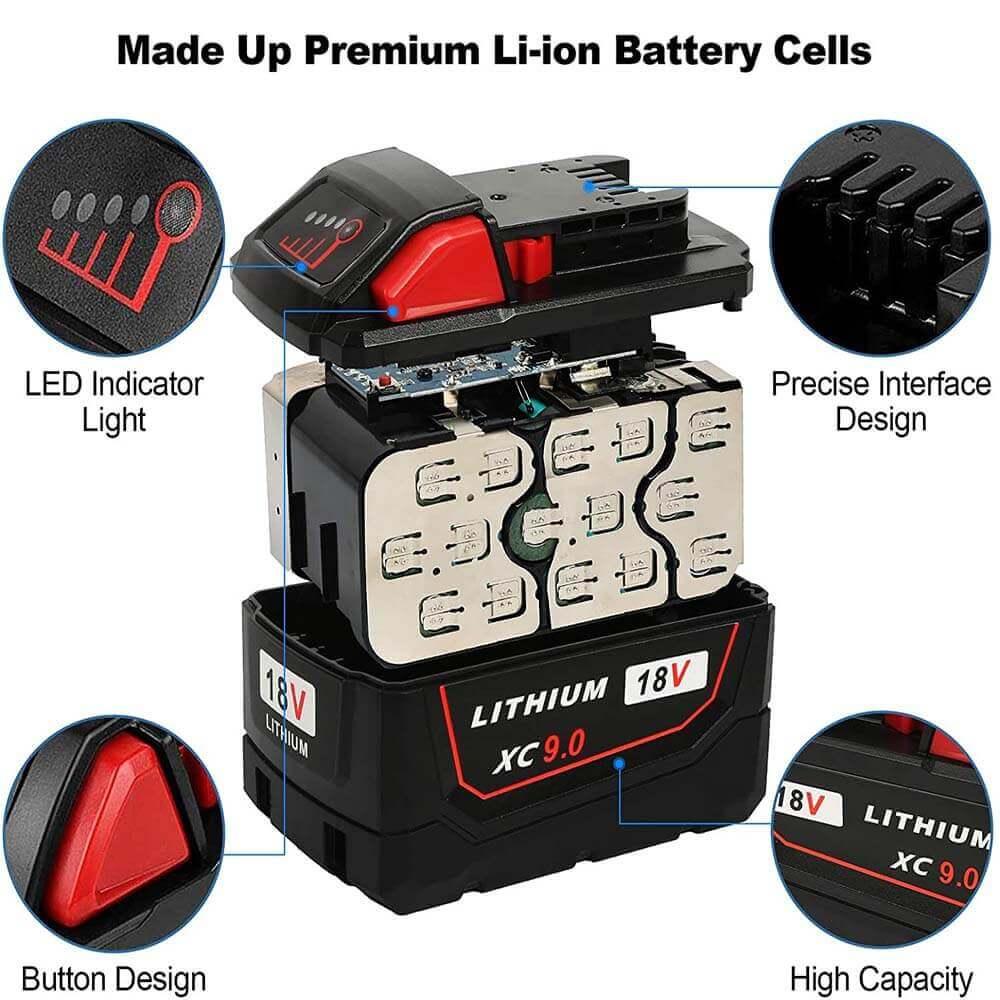 For Milwaukee M18 18V XC 9.0Ah Battery Replacement Li-Ion